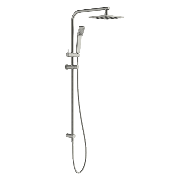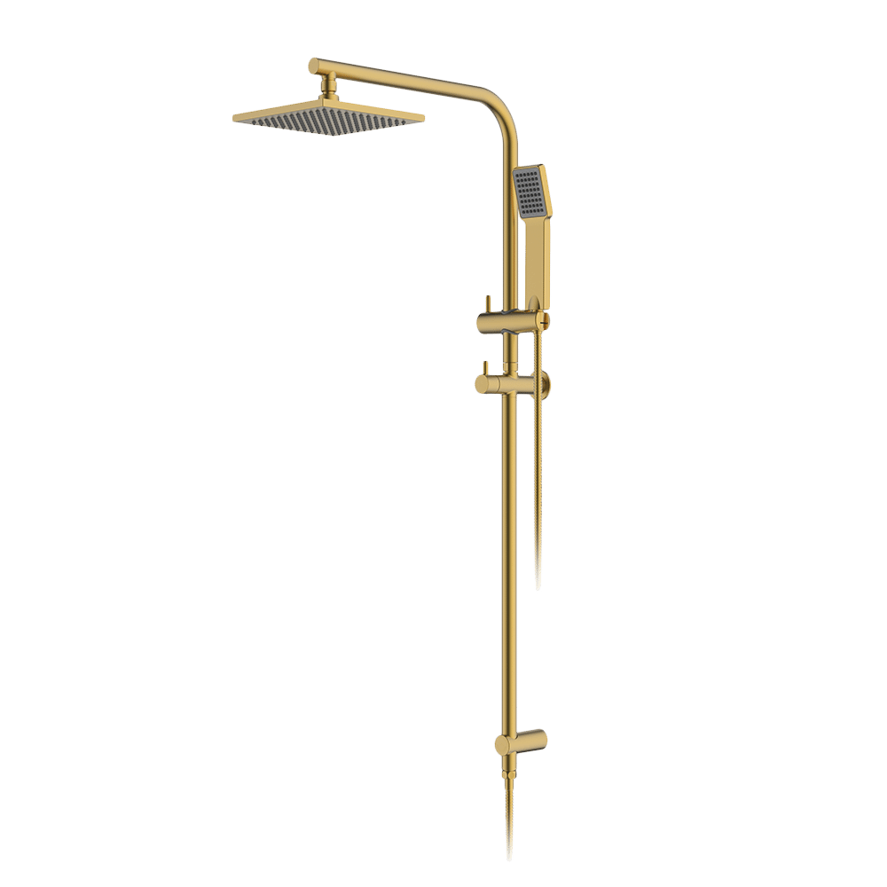 Features a functional rail and brass Shower Head.
